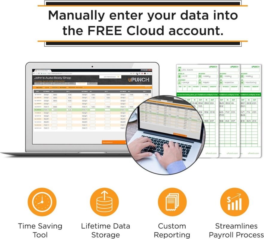 uPunch Time Clock Bundle with Cards, Time Card Rack, Ribbon- 2 Keys