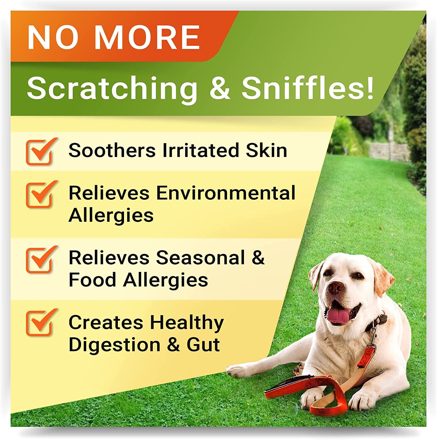 - Effective Allergy Relief: These dog allergy bites help protect dogs’ immune system from seasonal, food and environmental allergies, relieving excessive itching, redness, sneezing, sking irritation, scratching, chewing paws or other allergy symptoms.