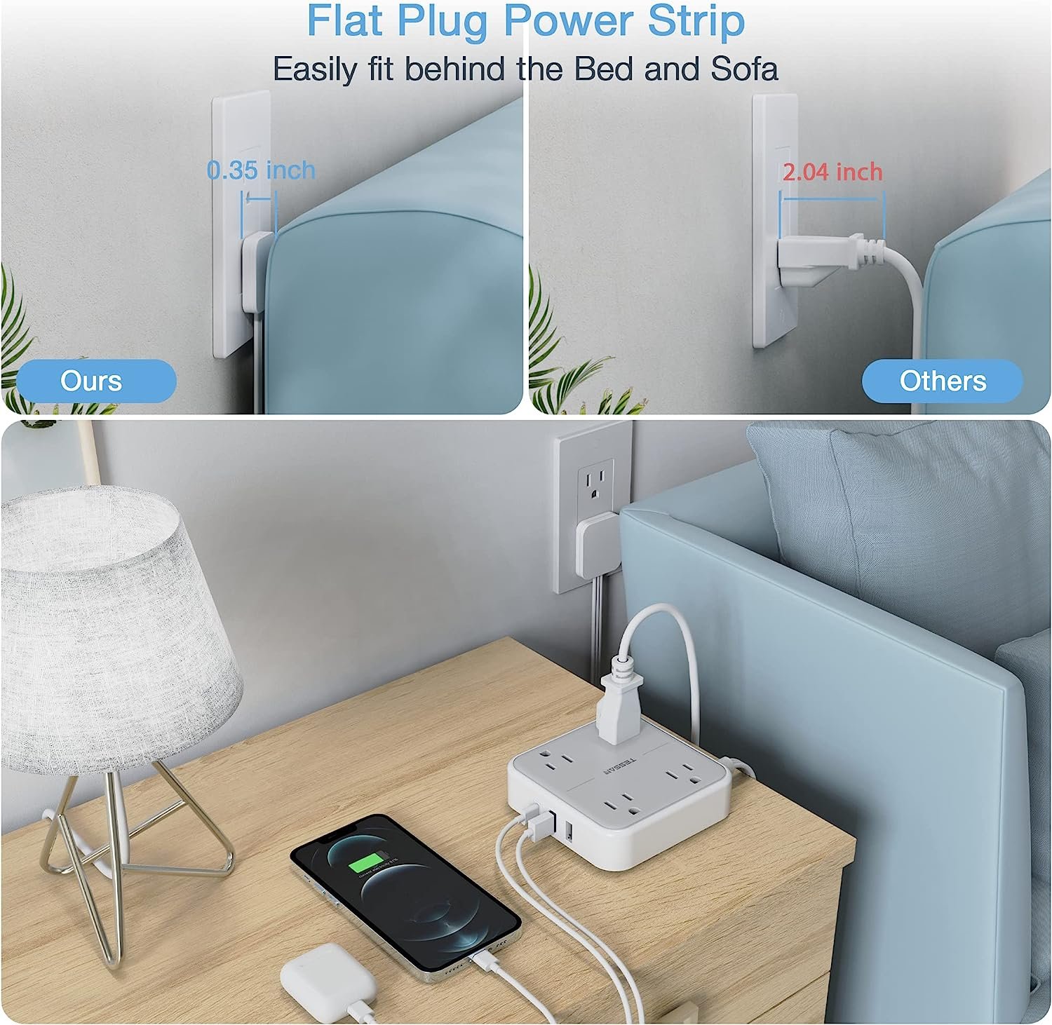 Ultra Thin Flat Extension Cord, TESSAN Flat Plug Power Strip
